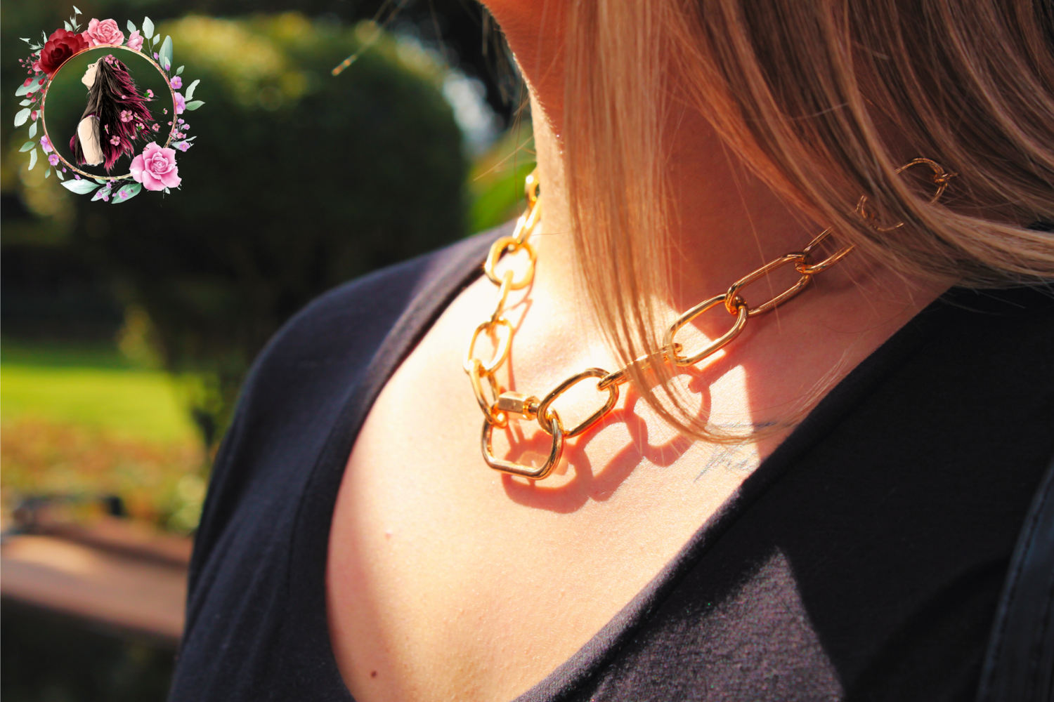 Why is it in fashion: Statement jewellery pieces like this neck chain have been recognized by Cosmopolitan as a bold Spring trend.