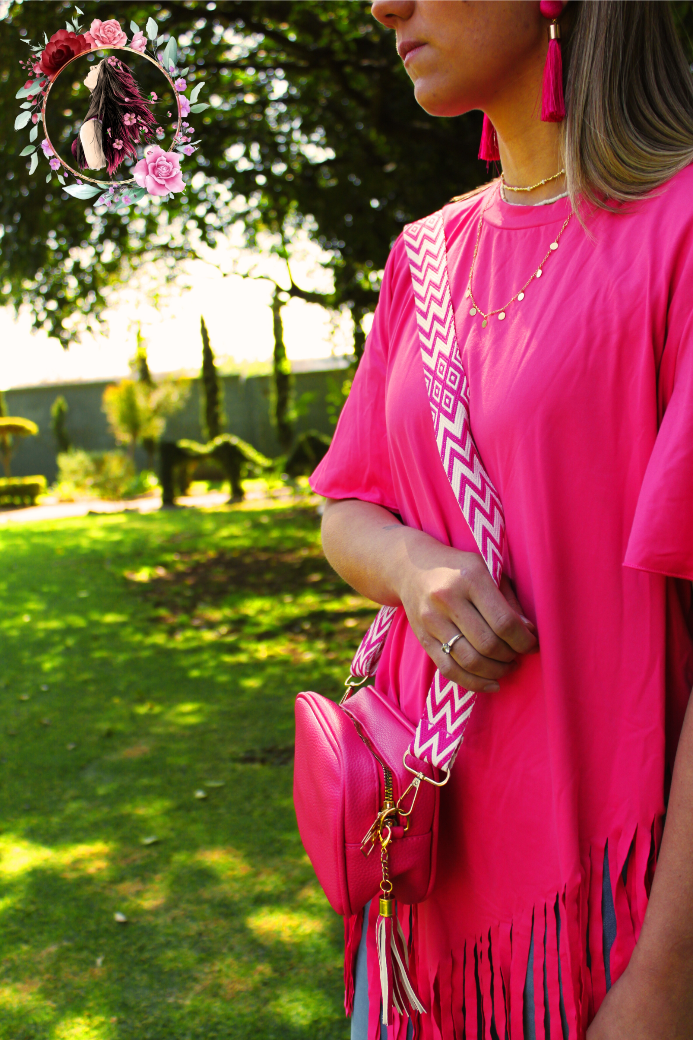 Why is it in fashion: This shirt combines both the Hot Pink and Fringes trend this Spring 2024, which is certain to make you stand-out and in fashion.